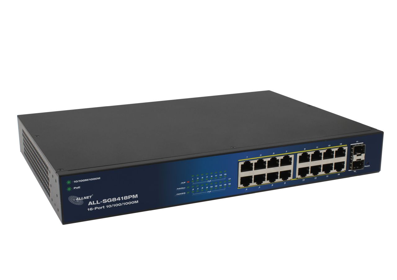 Entdecken Sie den neuen ALLNET ALL-SG8418PM Switch ? die ideale Lösung für kleine und mittlere Arbeitsgruppen, die eine schnelle und zuverlässige Netzwerkverbindung benötigen. Mit 16 abwärtskompatiblen Gigabit PoE Ports bietet dieser Switch eine leistungsstarke Konnektivität für Ihre PoE-fähigen Geräte.