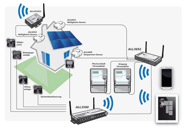 Dies sind nur wenige Beispiele, die sich mit den IP Steuer-, Mess- und Regelsystemen von ALLNET kostengünstig und ohne großen Aufwand realisieren lassen.